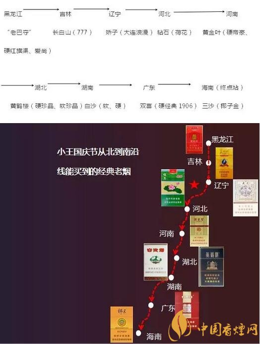 咱們先從南北說(shuō)起。假設(shè)本次旅游的主角小王從黑龍江坐火車出發(fā),一省一停,直至海南下車小王從黑龍江出發(fā),上車前先買包10元/包的“老巴奪”,以慰藉接下來(lái)的思鄉(xiāng)之情,并避免抽不慣外省的煙。