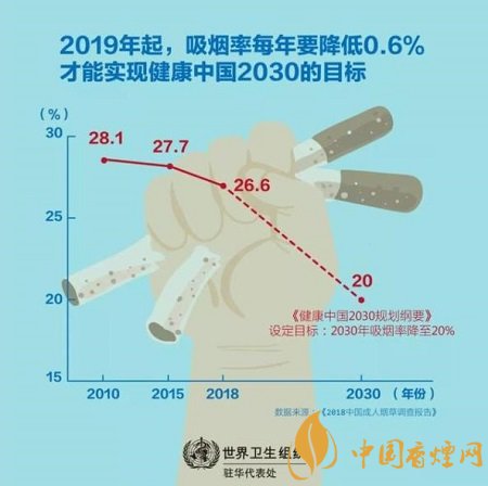 2019年世衛(wèi)組織全球煙草流行報(bào)告發(fā)現(xiàn),有50億人(約占世界人口的65%)目前被至少一項(xiàng)達(dá)到最高水平的MPOWER措施所保護(hù)。因此,全球吸煙率從2007年的22.5%下降到2017年的19.2%,在過去十年里相對(duì)下降了15%。相比之下,中國的吸煙率遠(yuǎn)遠(yuǎn)高于全球平均水平,進(jìn)展也明顯相較緩慢。《健康中國行動(dòng)》為深化煙草控制工作,并讓其他部門參與解決這一重要公共衛(wèi)生問題提供了機(jī)遇。2018年成人煙草調(diào)查結(jié)果和《健康中國行動(dòng)》讓我們有理由相信,中國煙草控制的轉(zhuǎn)折點(diǎn)不會(huì)遙遠(yuǎn)。