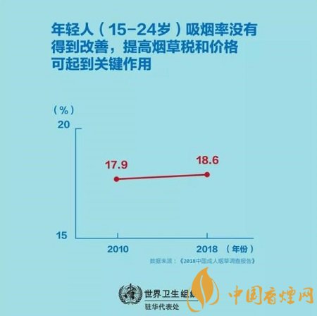 當(dāng)前吸煙者在注意到煙盒包裝上的健康警示后考慮戒煙的比例沒有變化,2010年為36.4%,而2018年為36.3%。這表明當(dāng)前的煙盒包裝上的健康警示在警告吸煙的危害方面可能并無效果。更令人擔(dān)憂的是,年輕人(15-24歲)的吸煙率沒有得到改善。2010年為17.9%, 而2018年為18.6%,此外,煙草價(jià)格仍然很便宜,每包20支卷煙的價(jià)格中位數(shù)僅為9.9元(約1.4美元)。
