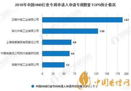 盡管我國現(xiàn)在暫未通過加熱不燃燒煙的銷售批準(zhǔn),但通過在Soopat上對(duì)“加熱不燃燒煙”的搜索,截至2019年年底,我國中煙集團(tuán)已經(jīng)加快加熱不燃燒煙相關(guān)領(lǐng)域的研發(fā),其中我國云南中煙工業(yè)有限公司對(duì)加熱不燃燒煙的申請(qǐng)數(shù)量最多,為187個(gè),緊隨其后的是湖北中煙工業(yè)有限公司,申請(qǐng)數(shù)量130個(gè)。
