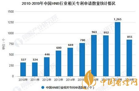 通過在Soopat上對(duì)“加熱不燃燒煙”的搜索,截至2019年年底,我國已有加熱不燃燒煙相關(guān)專利9278個(gè)。從整體來看,2013-2018年我國加熱不燃燒煙草的申請(qǐng)數(shù)量呈現(xiàn)上漲的趨勢(shì),在2019年小幅度下滑,2019年HNB的相關(guān)專利申請(qǐng)數(shù)是855個(gè)。