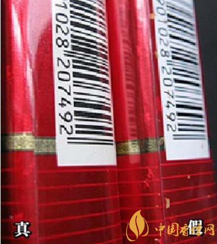 5、小盒拉線。真煙的小盒拉線有麻點(diǎn),且拉線上的字是膠印;假煙的小盒拉線沒有麻點(diǎn),拉線上的字為凹印(上真下假)。