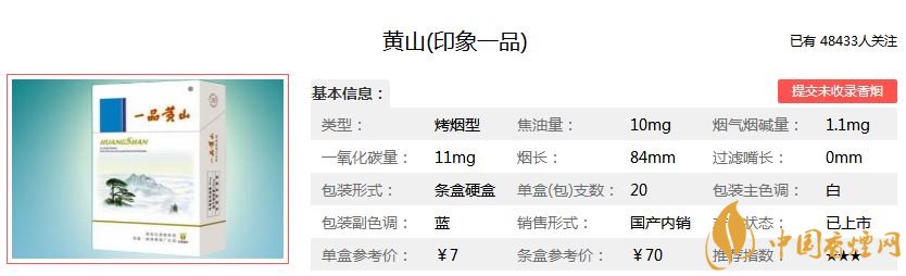 三亞新上市的香煙介紹 黃山印象一品上市