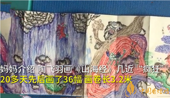 近日,重慶一名10歲的小男孩火了。重慶10歲的陶飛羽小朋友20多天先后畫了36幅《山海經(jīng)》,畫卷長(zhǎng)達(dá)3.2米,陶飛羽還嘗試?yán)L神話故事。下面讓我們一起來看看這個(gè)《山海經(jīng)》作品吧!