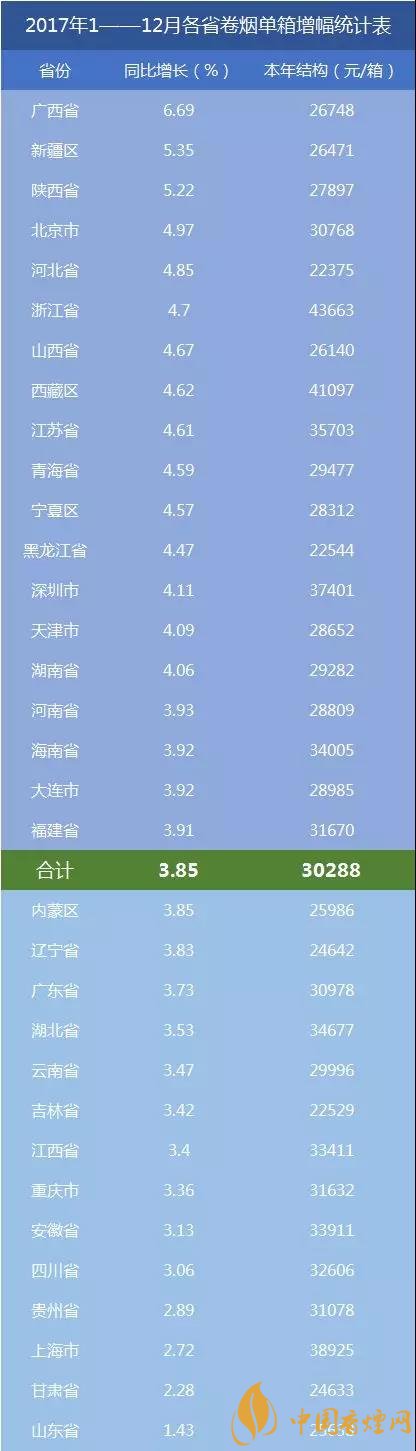 最新全國卷煙消費水平,雖然很多地區(qū)的卷煙單箱結(jié)構(gòu)可能低于全國水平,但是在“提結(jié)構(gòu)”上的努力也是不容忽視的。#p#副標(biāo)題#e#