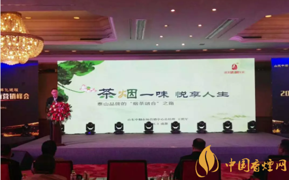 會議開始后,主辦方致以熱烈的歡迎辭。緊接著,山東中煙市場營銷中心總經(jīng)理王照軍在會上做了“煙茶一味 悅享人生”的主題演講,與在座諸位深刻探討泰山品牌的“煙茶融合”之道。