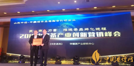 山東中煙特提供若干份煙草千元大獎禮包以及價(jià)值萬元的泰山之旅,更使得現(xiàn)場氣氛空前活躍,中獎的茶商們無不喜上眉梢,將本次峰會推向了高潮。糖煙酒周刊雜志社總編輯杜建明先生向山東中煙授予“中國煙茶品類融合創(chuàng)領(lǐng)企業(yè)”榮譽(yù)稱號: