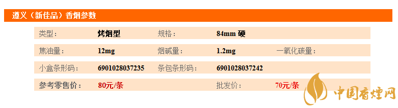 遵義(新佳品)香煙為遵義品牌旗下的一款香煙。佳品“遵義”是遵義集團新開發(fā)的遵義系列產(chǎn)品之一。該產(chǎn)品選用國內(nèi)外不同類型,不同地區(qū),不同年限的優(yōu)質(zhì)煙葉原料,借助先進的理化分析手段和致香物質(zhì)研究成果,經(jīng)過多次精心試制開發(fā)而成。 該產(chǎn)品香氣清雅飄逸,豐滿諧調(diào),余味純凈。給人以優(yōu)美舒適的感覺。