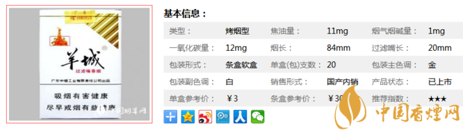 羊城軟白選用國內(nèi)外優(yōu)質(zhì)烤煙煙葉和白肋煙煙葉,具有典型美式混合型卷煙的香味風(fēng)格,香氣豐富而協(xié)調(diào),煙氣飽滿順暢,余味較舒適。下面我們一起來看看羊城軟白的參數(shù)信息:焦油量:11mg 煙堿量:1mg 一氧化碳量:12mg