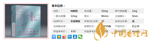 | 類型 :烤煙型 | 焦油量 :10mg | 煙氣煙堿量 :1mg | 一氧化碳量 :12mg |