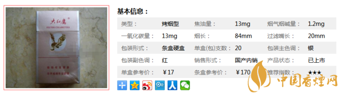 三、大紅鷹銀香煙參數(shù)