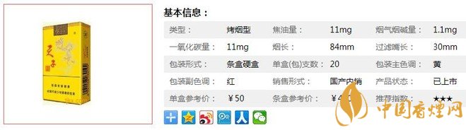 | 類型 :烤煙型 | 焦油量 :11mg | 煙氣煙堿量 :1.1mg | 一氧化碳量 :11mg |