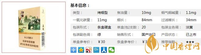 類型 :烤煙型 焦油量 :10mg 煙氣煙堿量 :1.1mg 一氧化碳量 :11mg