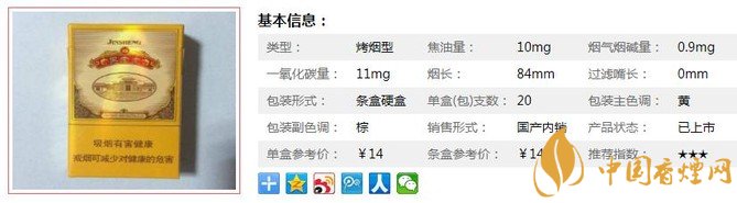| 類(lèi)型 :烤煙型 | 焦油量 :10mg | 煙氣煙堿量 :0.9mg | 一氧化碳量 :11mg |