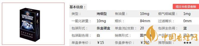 | 類(lèi)型 :烤煙型 | 焦油量 :10mg | 煙氣煙堿量 :1mg | 一氧化碳量 :10mg |
