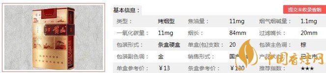 | 類型 :烤煙型 | 焦油量 :10mg | 煙氣煙堿量 :1.1mg | 一氧化碳量 :12mg |