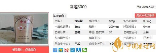 針對(duì)特色低焦油葉組配方品質(zhì)特征,通過高溫、高濕環(huán)境中使煙葉原料發(fā)生熱裂解、熱合成反應(yīng),達(dá)到改善煙草及煙草原料香氣質(zhì)、香氣量的目的,在保持產(chǎn)品香氣風(fēng)格和口味特征的基礎(chǔ)上,充分發(fā)揮煙葉原料潛質(zhì)和使用價(jià)值。經(jīng)香煙網(wǎng)小編市場調(diào)查雪蓮3000售價(jià)為20元/包。
