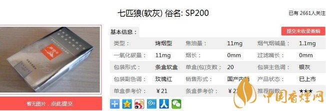 七匹狼軟灰亦稱七匹狼(SP200),精選國內(nèi)外優(yōu)質(zhì)烤煙,人工片選精華,運(yùn)用國際先進(jìn)的無氟及過濾技術(shù)、HXD烘絲工藝,由全新的國際一流廠房和設(shè)備精工制作,氣質(zhì)卓越優(yōu)雅,品味自然純正,煙草本香流露無遺,是比較經(jīng)典的具有較高性價比的狼煙。經(jīng)香煙網(wǎng)小編市場調(diào)查七匹狼軟灰售價為21元/包。