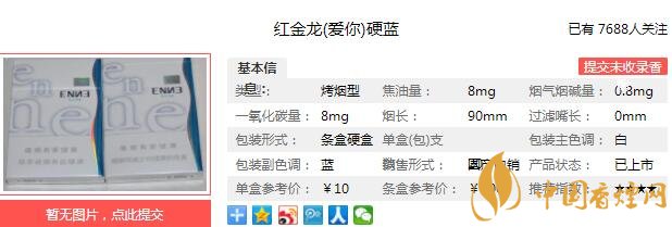 90mm的超長煙支,配搭5.45mm的細支直徑,滿足了吸食者新鮮有趣的消費體驗。8毫克焦油含量,實現(xiàn)香韻與吸食感的完美統(tǒng)一,口感柔和細膩、煙氣淡雅醇厚。下面我們一起來看紅金龍硬藍愛你的參數(shù)信息:焦油量:8mg 煙堿量:0.8mg 一氧化碳量:8mg
