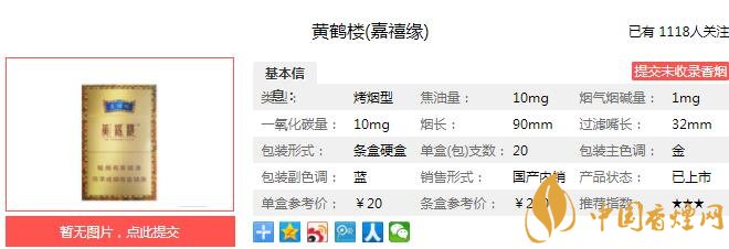 以環(huán)神農(nóng)架地區(qū)優(yōu)質原生態(tài)煙葉輔以天然香精香料,以現(xiàn)代工藝增香體質,讓煙氣醇和舒暢,香味優(yōu)雅細膩,入喉細膩醇和,回味綿長。經(jīng)香煙網(wǎng)小編市場調(diào)查黃鶴樓嘉禧緣售價為20元/包。