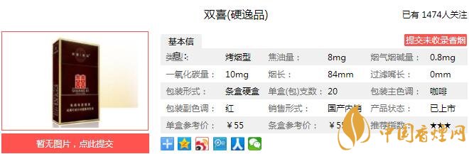 以上便是由香煙網(wǎng)小編為大家介紹的關(guān)于雙喜硬逸品多少錢(qián)一包 雙喜硬逸品口感及參數(shù)介紹的相關(guān)信息,想要了解更多有關(guān)內(nèi)容請(qǐng)點(diǎn)擊:黃金葉硬黃金多少錢(qián)一盒 黃金葉硬黃金口感醇香細(xì)膩