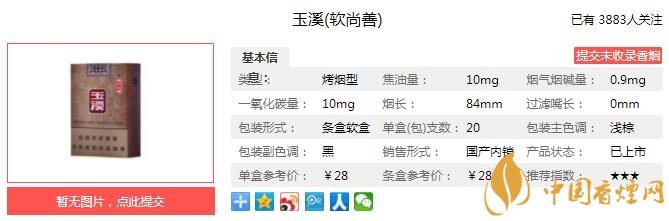 尚善玉溪秉承玉溪家族醇厚清香的經(jīng)典本味,精選云煙之鄉(xiāng)優(yōu)質(zhì)煙葉,煙葉配伍豐富而協(xié)調(diào),呈現(xiàn)溫潤(rùn)醇香的細(xì)膩口感,軟包硬化的獨(dú)特包裝,完美保護(hù)每支尚善玉溪的卓越享受。經(jīng)香煙網(wǎng)小編市場(chǎng)調(diào)查玉溪軟尚善售價(jià)為28元/包。