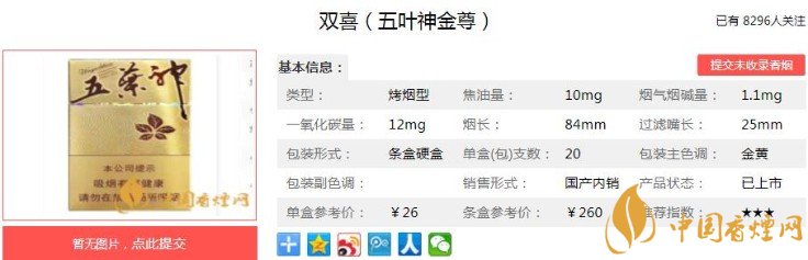 大家都知道,在當(dāng)年五葉神在全國(guó)可以說(shuō)是非常的火熱,引領(lǐng)降焦減害潮流。不僅僅香氣十分突出,品牌效應(yīng)也是非常不錯(cuò)的。雙喜(五葉神金尊)在香煙品牌當(dāng)中也算是打下了一片江山。下面跟著香煙網(wǎng)小編一起來(lái)了解雙喜(五葉神金尊)的相關(guān)信息吧。