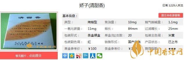 以上便是香煙網(wǎng)小編為大家介紹的關(guān)于嬌子清甜香多少錢(qián)一包 嬌子清甜香價(jià)格及口感評(píng)析的相關(guān)信息,看完之后大家是不是對(duì)于嬌子(清甜香)這款香煙的相關(guān)信息更加了解呢。大家還想查詢更多的相關(guān)內(nèi)容歡迎點(diǎn)擊:盤(pán)點(diǎn)嬌子系列口感最好的五款香煙 嬌子精品上榜