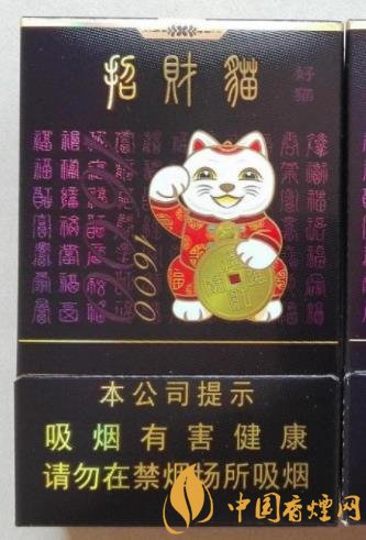 招財(cái)貓(招財(cái)進(jìn)寶1600)售價(jià)為18元/包,非常具有中國(guó)傳統(tǒng)的喜慶特色,阿拉伯?dāng)?shù)字1600,寓意此貓不僅招財(cái)而且還會(huì)給你帶來(lái)甜蜜的生活,口感更綿、更柔、更順煙味醇和,比較細(xì)膩,捏完爆珠,這煙很甜,能抽出蜂蜜味道來(lái),但抽多了膩。