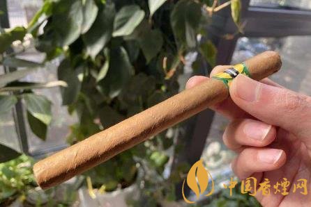 雪茄入手,手感緊實(shí)致密,纖細(xì)修長的茄身彰顯其精致,執(zhí)于鼻間,茄香撲鼻,單聞茄香便陷入沉醉,非常過癮。量了下煙支尺寸,長度 150mm,直徑 14mm,環(huán)徑 44mm,焦油量:中,售價(jià)為80元/盒。