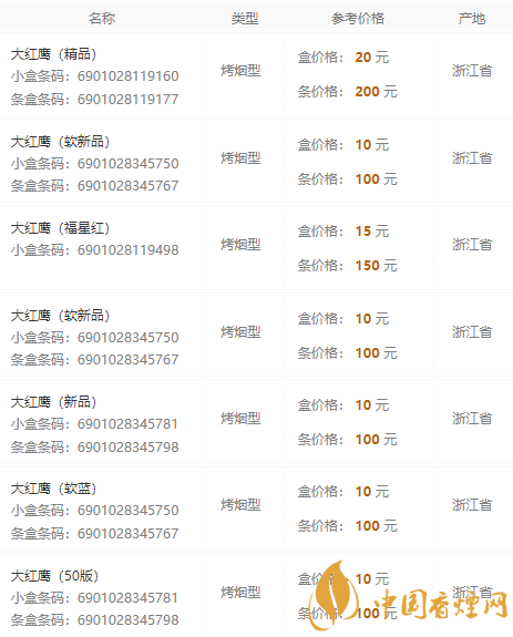 香煙網(wǎng)為您提供2020大紅鷹香煙價格表和圖片,大紅鷹這個品牌在浙江是一個風光無限的品牌,這款香煙在老煙民的眼里都是老牌了,那么,您知道2020大紅鷹香煙價格嗎?趕緊來香煙網(wǎng)看看吧!