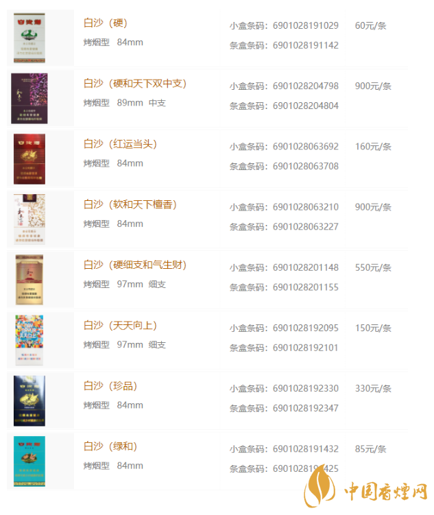 以上就是香煙網(wǎng)小編為您提供的關于白沙香煙價格表圖大全的相關信息,更多詳情資訊請點擊香煙網(wǎng)了解有關信息