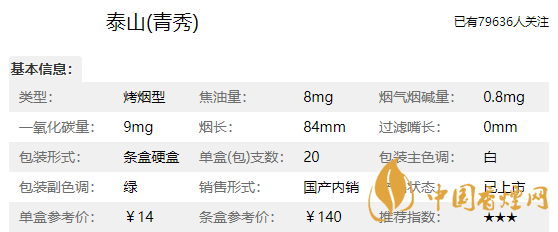 泰山青秀多少錢一盒2020 泰山青秀香煙價(jià)格參數(shù)一覽2020
