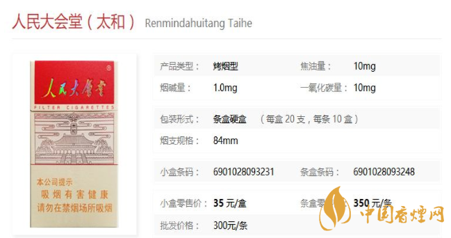 太和會(huì)堂精選玉溪、津巴布韋、巴西等國內(nèi)外優(yōu)質(zhì)煙葉,通過最先進(jìn)的數(shù)字化配方設(shè)計(jì)和精細(xì)化柔性加工,煙絲光澤油潤,聞香舒適,突出純正煙草本香;香氣豐滿,煙香濃郁,吸食口感柔、細(xì)、綿特點(diǎn)突出,充分做到滿足感、舒適感、輕松感三感平衡。經(jīng)市場調(diào)查人民大會(huì)堂太和售價(jià)為35元/包。