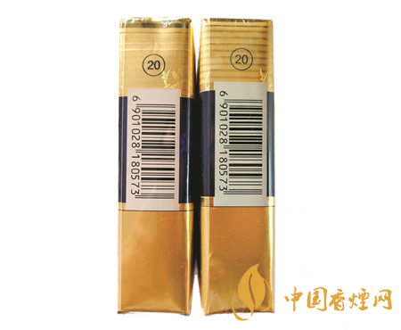 真 假 商標紙側面印刷工藝對比:真煙商標紙側面條紋較窄、顏色較淺,圓圈和數字“20”顏色較深、位置較低,條形碼位置稍低;假煙商標紙側面條紋較寬、顏色較深,圓圈和數字“20”顏色較淺、位置偏高,條形碼位置稍高。