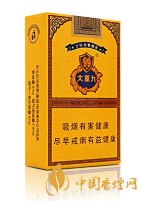 細(xì)支大九采用硬盒包裝,外觀印刷設(shè)計(jì)沒有什么改變,無(wú)雜質(zhì)的金礦黃襯托盾牌花邊“大重九”,背面是麥穗包裹99,簡(jiǎn)單大氣的包裝卻不失豪華端莊,那么這款大重九多少錢一包,它的價(jià)格為100元/包。