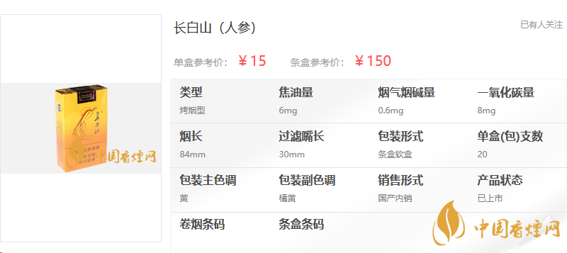 長白山人參的價格是15元/盒,“長白山(人參)”香氣豐富、細膩、流暢,余味干凈舒適,充分滿足消費者對新口味優(yōu)質卷煙的特殊需求,實現了優(yōu)質卷煙香氣特征與低焦油低危害指數的完美結合。