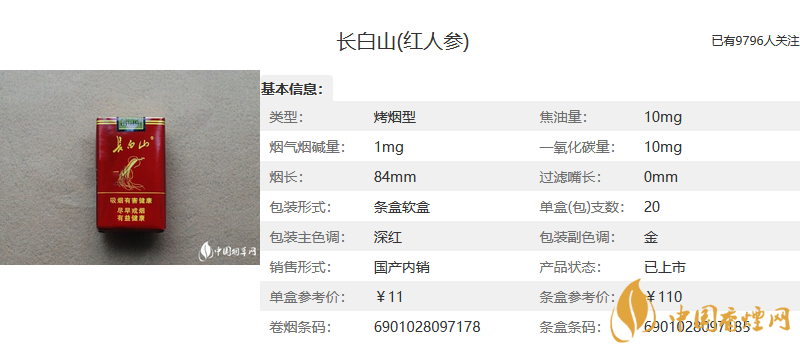 以上就是小編收集到的長白山人參香煙價格表和圖片一覽,長白山人參香煙多少錢一包的相關內容,以上數據均來源于網絡,僅供參考,小編溫馨提示,為了您和家人的健康,請您盡量少吸煙,更多相關信息請關注香煙網。