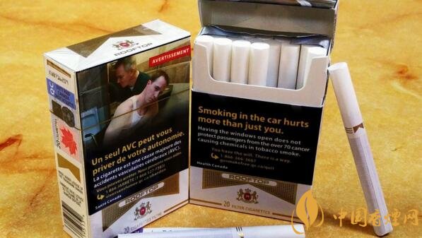 煙盒的3/4版面被忠告圖和戒煙引示語所占據(jù)。萬寶路的Logo也僅剩區(qū)區(qū)1/4,勉強還能看出是萬寶路來。由于之前上世紀八十年代和加拿大本土Marlboro商標持有人“斗牛士獨行者”公司的官司敗訴,加拿大銷售的萬寶路,不得有任何Marlboro的文字標識。這也是在了解屋頂香煙多少錢一包之后,必須要知道的。