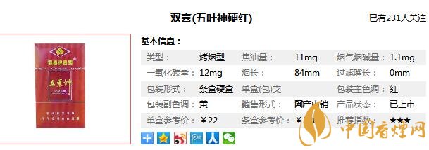五葉神卷煙品牌作為中國高檔烤煙型卷煙品牌,創(chuàng)立于1999年,以先進的科學技術為依托,以升級中國卷煙品質為己任,贏得了消費者的認同,那么在對五葉神香煙價格圖片進行分析之前,先來看一看這款五葉神2000多少錢一包,五葉神2000其實就是現(xiàn)在的雙喜五葉神硬紅,它的零售價為22元/包。