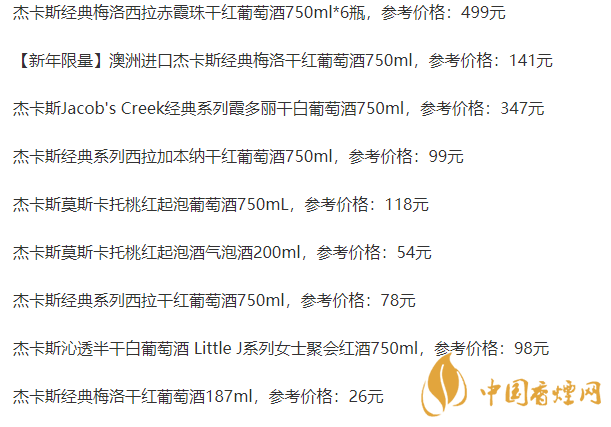 杰卡斯紅酒最新價(jià)格