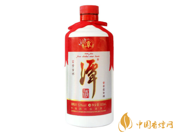 潭酒富貴吉祥,由四川古蘭仙譚酒廠新推出的一款53度醬香型白酒。該酒精選當?shù)貎?yōu)質(zhì)小麥,高粱為原料,每年重陽開始投料,同批原料要歷時一年,經(jīng)9次蒸煮,8次發(fā)酵,7次取酒,再經(jīng)3年以上酒庫存放,最后精心勾兌而成。使其微黃透明,醬香突出,陳香舒適,醇厚綿柔,幽雅細膩,回味悠長空杯留香持久,醬香風格典型。
