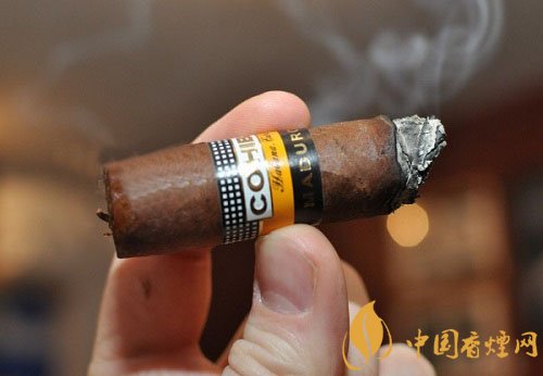 味道非常飽滿,噴薄而出,即使煙氣略微輕盈,也掩飾不住那濃重的意味。初燃以木味為主,伴有少許的皮革和橘皮味,攝一口煙氣經(jīng)過鼻腔,很沖,回味有點辣喉。不愧是高希霸濃郁的系列。燃燒中規(guī)中矩,不算完美但也不差勁,持灰2厘米左右時,第一段煙灰自然脫落(整個過程4段煙灰)。稍顯松散。