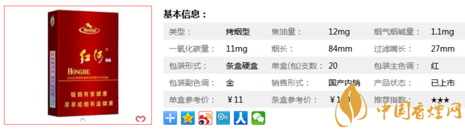 | 類型 :烤煙型 | 焦油量 :12mg | 煙氣煙堿量 :1.1mg | 一氧化碳量 :11mg |
