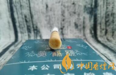 煙支的整體長(zhǎng)度是74mm,過濾嘴長(zhǎng)度是32mm。鵝黃色過濾嘴紙張上,也印制著竹葉的圖案。7mm寬度的金圈上,黃鶴樓的字樣看不太清晰。嗅聞煙支,味道很淡。