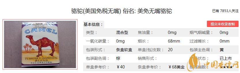 煙民們應(yīng)該都知道,無(wú)嘴香煙對(duì)我們的身體傷害很大,從80年代后期,過(guò)濾嘴香煙出現(xiàn)后,無(wú)嘴香煙便慢慢被淘汰了,但是對(duì)于一些老煙民來(lái)說(shuō),無(wú)嘴香煙的口感是經(jīng)典,始終無(wú)法超越。今天小編就為大家介紹一款無(wú)嘴香煙——無(wú)嘴駱駝(美國(guó)免稅)。下面讓我們一起去看看這款無(wú)嘴駱駝的價(jià)格以及抽過(guò)的煙民的品吸點(diǎn)評(píng)。