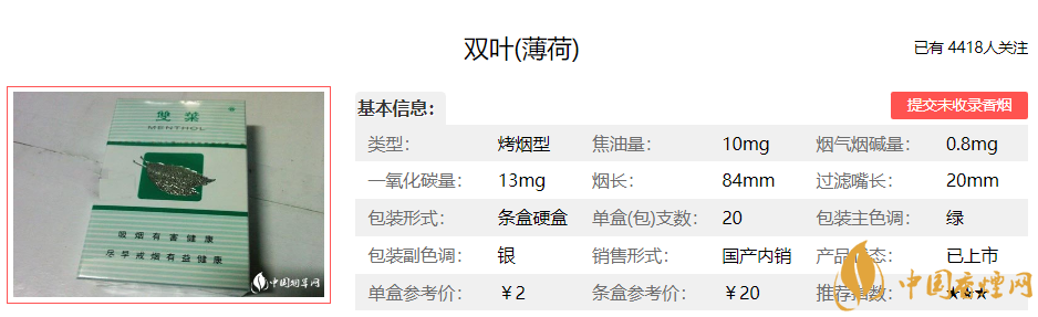 雙葉煙也是小時候抽過的比較經(jīng)典的一款煙,最后才知道它是一款薄荷煙,和我們抽過的其他煙有很大的區(qū)別,抽起來涼颼颼的。煙香保持和諧,口味清新、自然,通體舒暢。產(chǎn)品獨(dú)特的香味感受以及平易的價格,讓眾多消費(fèi)者對其情有獨(dú)鐘。