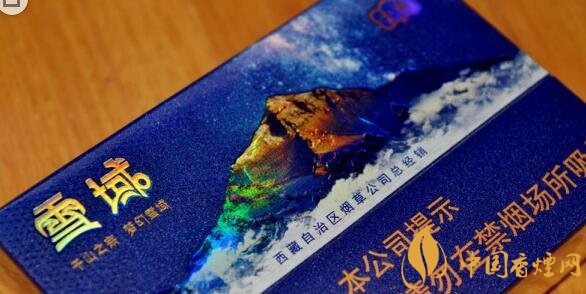 我們在說云煙雪域怎么樣的時候,它的外觀也是非常有特色的。云煙雪域整體配色為藏青色,首先進入眼簾的便是一座雪山聳立云端之上,帶有一些藏文色彩的雪域兩字被印在煙盒左上角,下面連帶兩排小字:千山之宗,夢幻雪域,令人心向神往,背面的圖案則是一眾群山,中間像是一個畫框,整體感覺非常新穎。