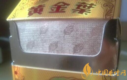金色打造,也用上了閃光的設(shè)計(jì),而且葉片煙標(biāo)更是離不開(kāi),正面都有著暗淡底紋,上半盒身的圖案包圍著黃金葉紅色粗字和那簡(jiǎn)單深造的煙標(biāo)葉片,因?yàn)楦牧舜肿志菊Z(yǔ)的原因使到背面與正面一個(gè)樣了。