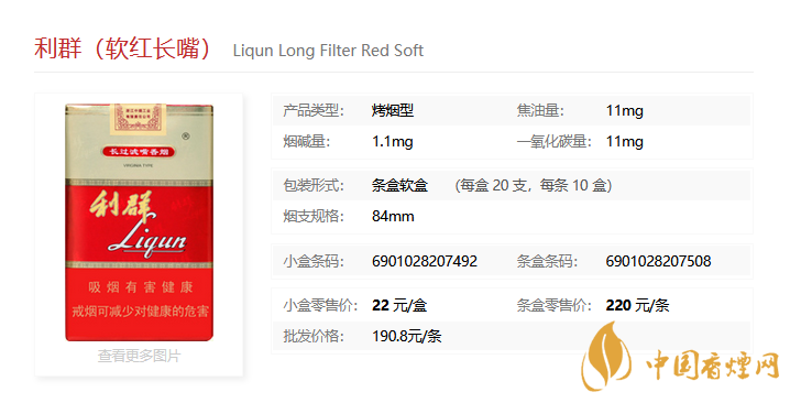 利群軟紅長嘴香煙簡介